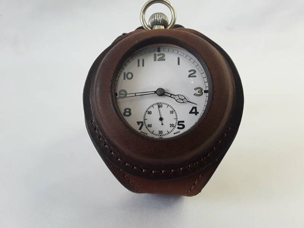 This is a fabulous and ready to wear recently serviced and fully working World War II general service pocket watch, set in a modern high quality leather handmade, first/second world war style military/aviators wrist strap.