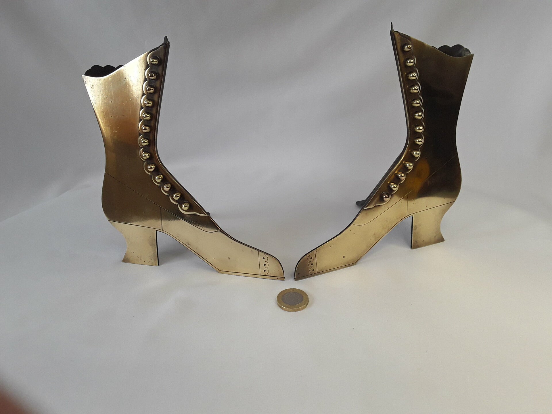 Antique Victorian Brass boot Match/Spill holder~ matching pair.